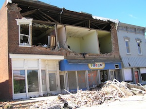 Leo Ramer had arranged for the Ecumenical Singers to perform at the Abraham Lincoln Presidential Library and Museum on June 5th. I got to sing patriotic songs in Springfield on the same day as Elmwood’s Strawberry Festival. It was a great experience. We got home about 5PM and Erik left for Galesburg. Alex and I decided something was going on when we lost power at 7:30 PM. We heard a whoosh went to front door to look out and saw the funnel. It was the first twister I had ever seen. We went to the basement although it was already past our house. So began the new episode of life following the tornado. I spent hours and hours updating information on the website, as well as getting my own stuff out of my office. Fortunately even though the wall on the second floor was knocked off the down stairs and rest on the building stayed intact.. I moved my stuff home and Elmnet moved to a new office.